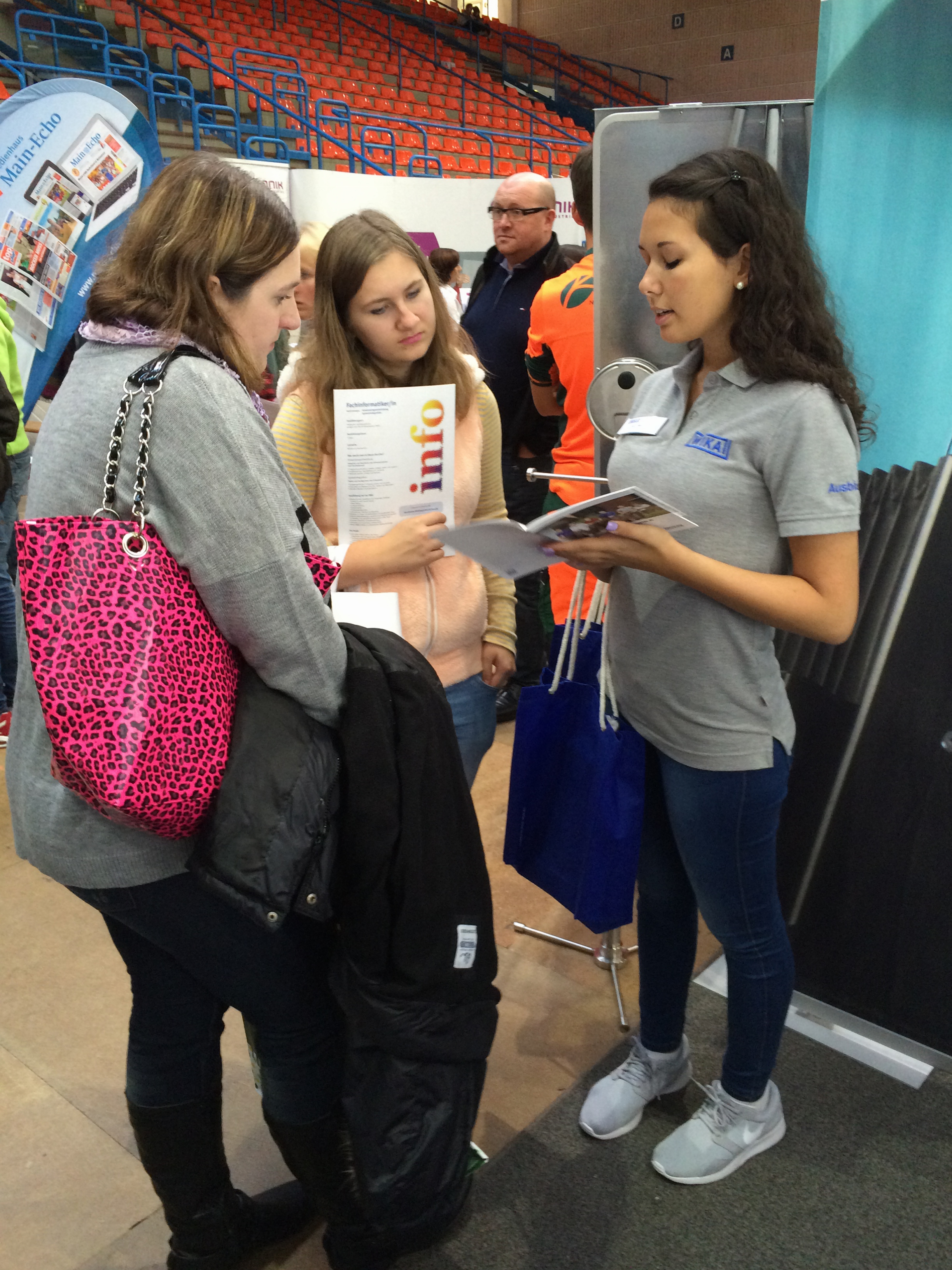 am Samstag, den 10. Oktober 2015, fand der „Berufswegekompass“ in Aschaffenburg statt. Dies ist die Ausbildungsmesse am bayerischen Untermain, welche praxisnah und vielfältig über Ausbildungsgänge und Berufschancen informiert. Neben den Beratern der Bundesagentur für Arbeit, die wertvolle Tipps und Ratschläge gaben, waren auch viele Unternehmen mit ihren Ausbildern und Auszubildenden vertreten, die Fragen über Voraussetzungen, Ziele und Inhalte der Ausbildung beantworteten.
