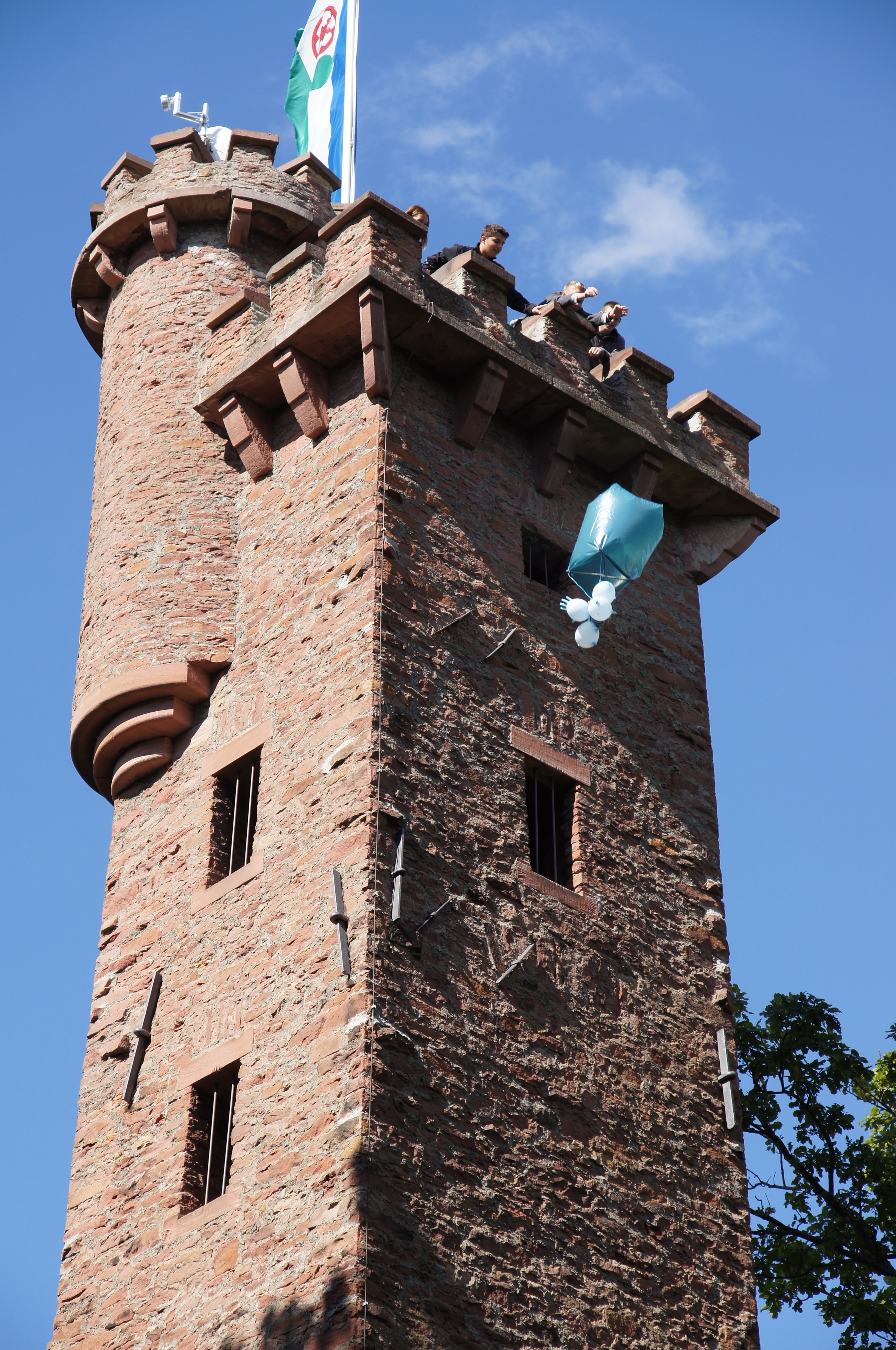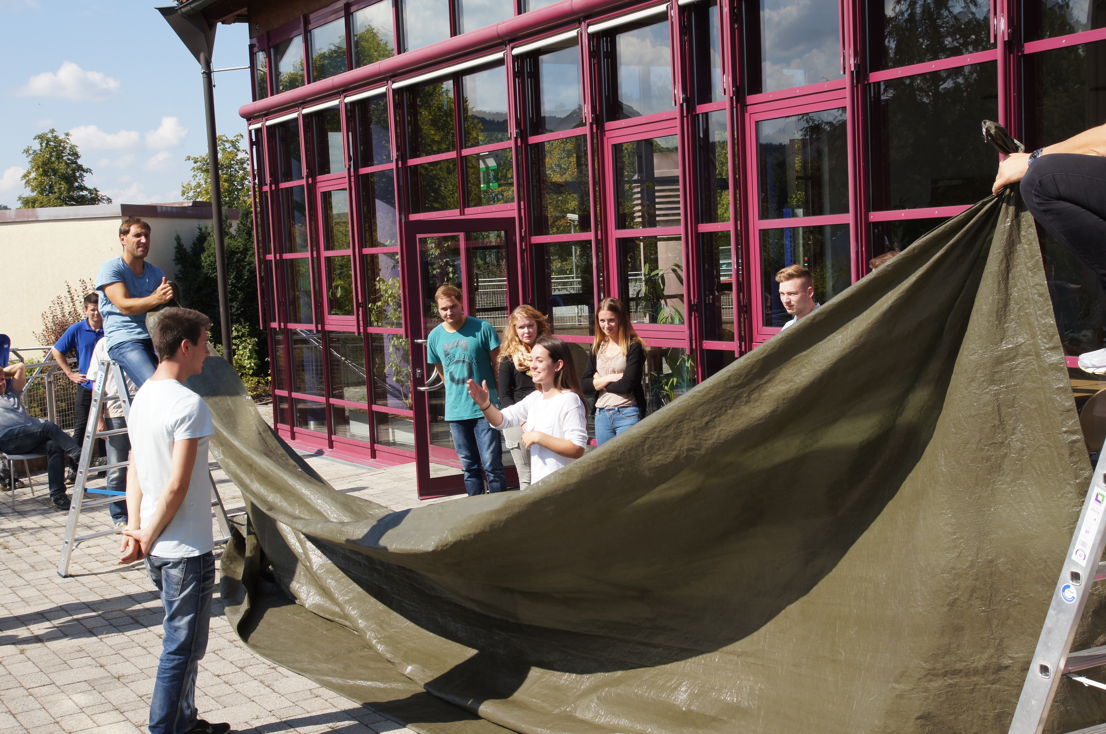 Bei unserer nächsten Mission ging es darum, mit vorgegebenen Materialien ein rohes Ei sicher zu verpacken, sodass es den Wurf vom Aussichtsturm in Klingenberg heil überlebt. Und dies gelang in diesem Jahr fast jedem Team!