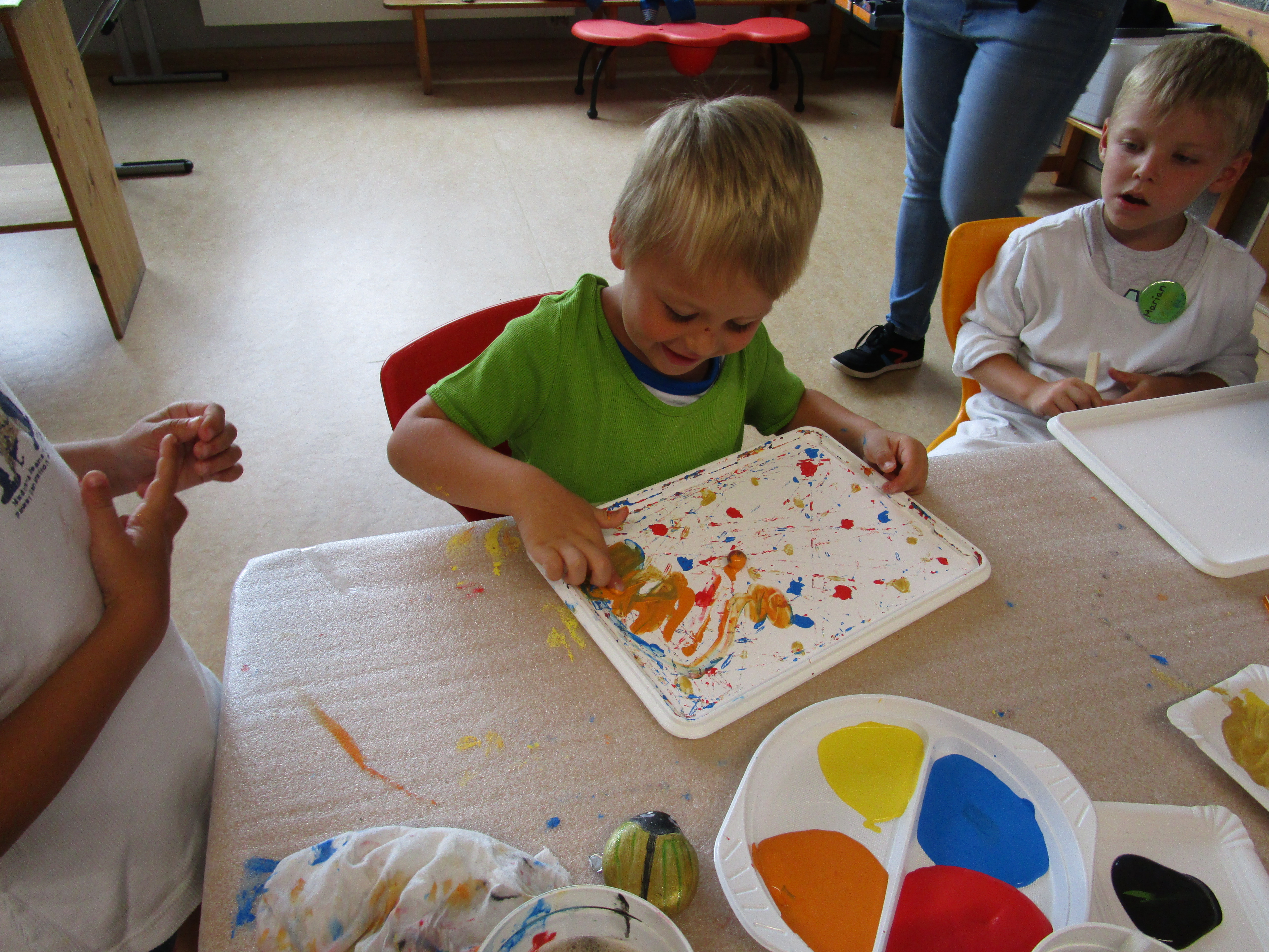 Dienstags war die Aufregung schließlich groß, der Klingenberger Künstler Oskar Kara kam zu Besuch. Er gestaltete mit den Kleinen bunte Murmelbilder und bemalte mit ihnen Steine in vielfältiger Weise. Für die Größeren im Alter von sieben bis dreizehn Jahren, stand das Bauen von Vogelhäusern auf dem Programm.