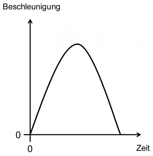 Schocktests werden nach der Norm IEC 60068-27 durchgeführt. Sie unterscheidet grundsätzlich zwischen 3 verschieden Schocktypen. Dem Halbsinus-Schock, dem Sägezahn-Schock und dem Trapez-Schock. An dieser Stelle beschränken wir uns auf den Halbsinus-Schock, da dieser am weitesten verbreitet ist. Der halbsinusförmige Schock bildet einen Schock nach, der bei dem Anstoßen und Abbremsen schwingungsfähiger Teile entsteht. Die Abbildung zeigt die Beschleunigungskurve.