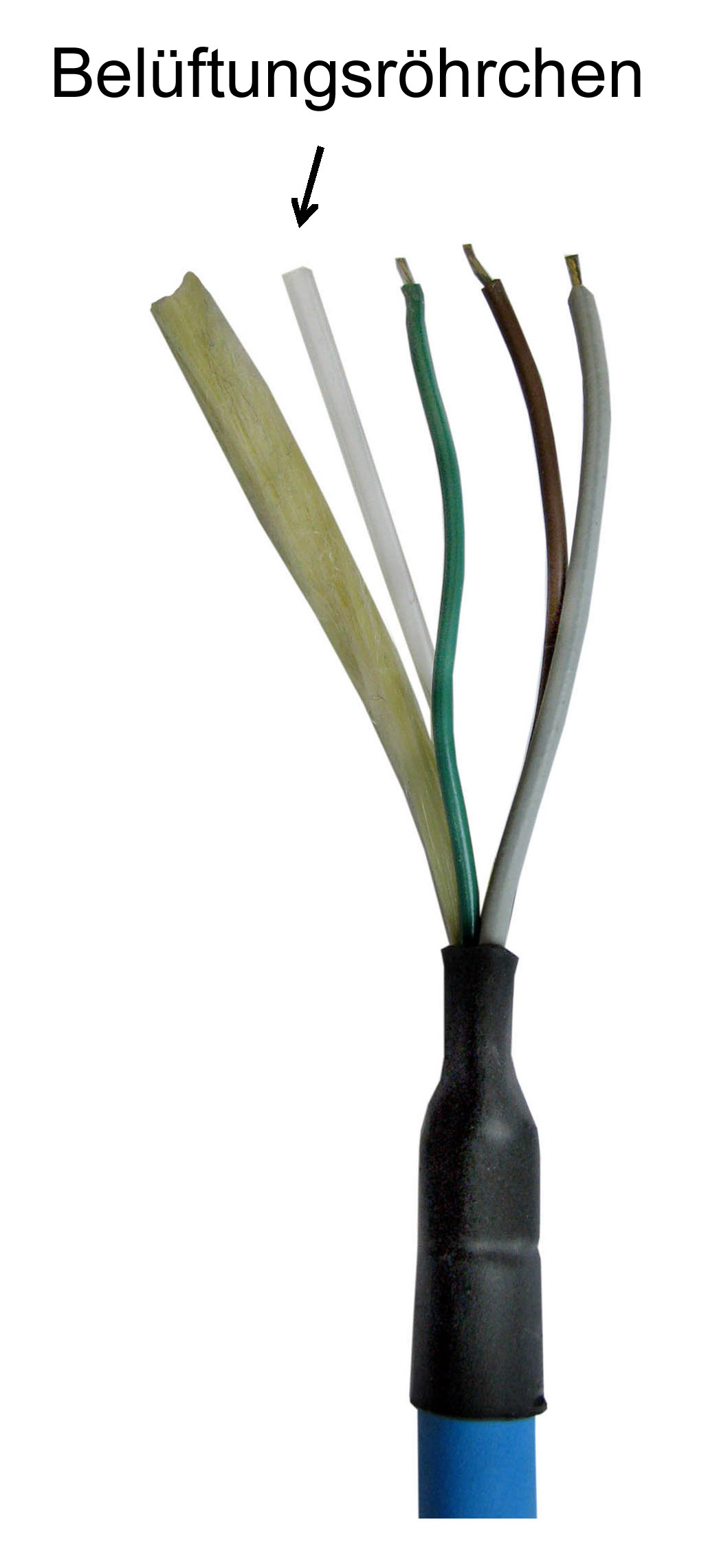 Zum Ausgleich des aufliegenden Umgebungsdruckes wird also vom Sensorelement innerhalb der Pegelsonde durch das Kabel bis hinauf zum Kabelende ein Belüftungsröhrchen geführt. Aufgrund des Kapillareffektes kann aber auch neben dem erwünschten Luftausgleich Feuchtigkeit bis hinunter in die Sensorik transportiert werden. Dringt also nicht nur Luft, sondern auch Feuchtigkeit in das Röhrchen ein, kann der Sensor und die ihn umgebende Elektronik im Inneren der Sonde irreparabel beschädigt werden. Dies kann zu Messfehlern und im schlimmsten Fall sogar bis zum Ausfall der Sonde führen. Um einem vorzeitigen Ausfall vorzubeugen, muss also der Feuchtigkeitseintritt in das Belüftungsröhrchen unbedingt verhindert werden. Einen zusätzlichen Schutz gegen das Eindringen von Feuchtigkeit durch das Belüftungsröhrchen bietet das Anbringen eines luftdurchlässigen, aber wasserundurchlässigen Filterelements am Ende des Belüftungsröhrchens.
