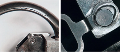 Abbildung 2: Risse in der Rohrfeder oder eine ausgeschlagene Zugstange sind Beispiele für typische Vibrationsschäden in der Mechanik von Manometern. Ein solcher Verschleiß wird durch eine Gehäusefüllung vermieden.