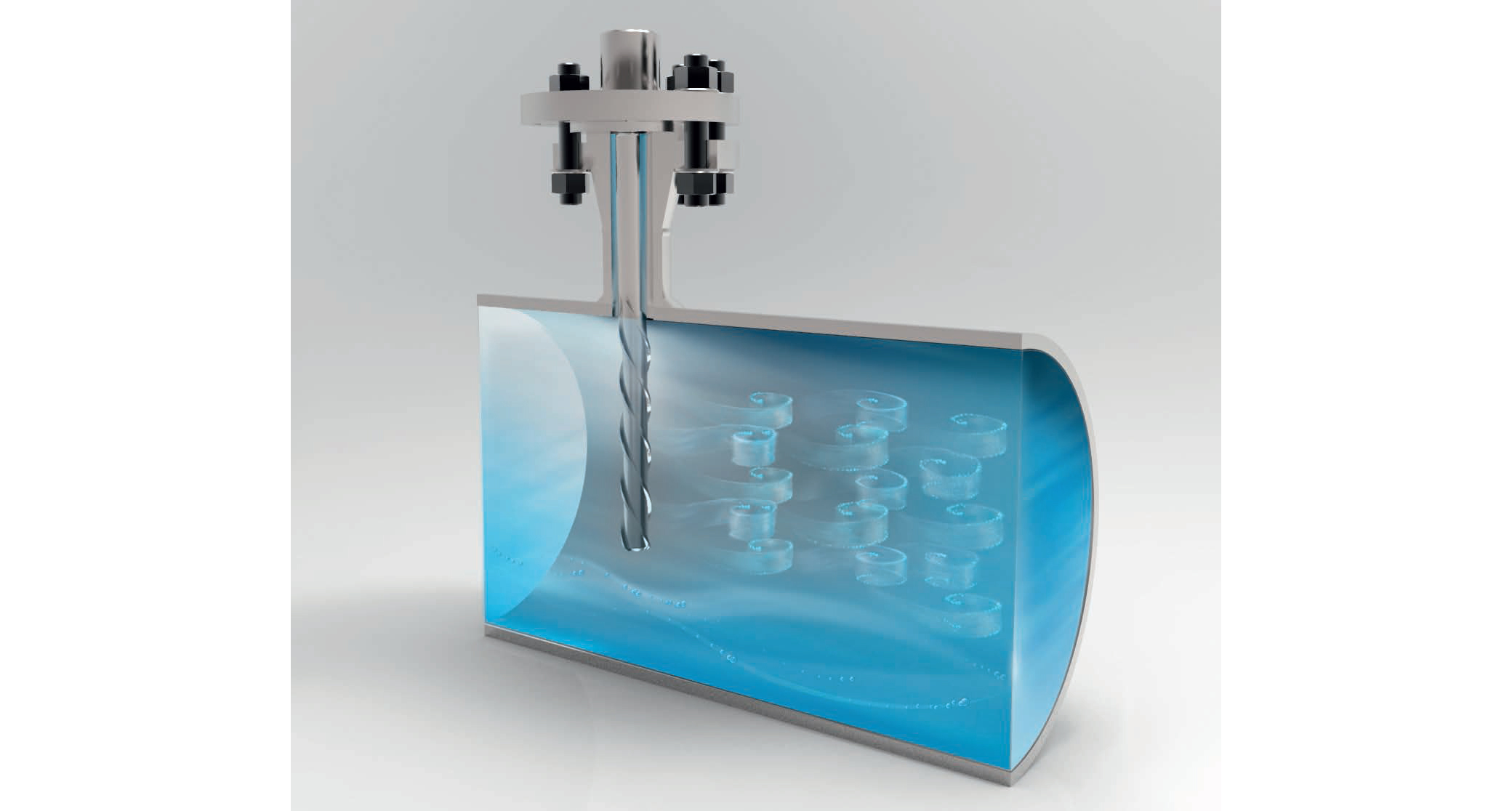 Die helixartigen, um den Schutzrohrschaft angeordneten Wendeln des ScrutonWell ®-Designs brechen die Strömung und verhindern so die Ausbildung einer klar definierten Kármánschen Wirbelstraße. Durch die reduzierten Amplituden der diffusen Verwirbelungen wird eine Schwingungsanregung des Schutzrohres vermieden.