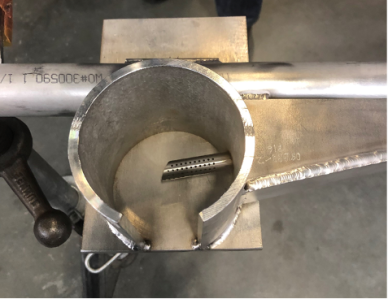 Para evitar los problemas asociados a los sensores con bridas individuales insertados en la pared del tanque, decidimos crear un termopozo especial que entraba en el horno a través de una puerta en el extremo de entrada. El termopozo especial se diseñó con una cámara protectora semiabierta. Se introdujeron seis pequeños tubos uniformemente a lo largo de este pozo, cada uno de los cuales estaba perforado en el extremo para permitir que el catalizador caliente entrara en contacto con el sensor, manteniendo al mismo tiempo una protección suficiente para los frágiles elementos sensores. La parte del tubo de inserción que no estaba dentro del conjunto de la cámara estaba protegida por una tapa protectora.