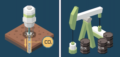 El CO2 aislado de los gases sucios no es lo bastante puro para fabricar bebidas carbonatadas, pero es útil para la recuperación mejorada de petróleo (EOR). La EOR de CO2 es un método muy popular en Estados Unidos para extraer petróleo de yacimientos que se han vuelto improductivos con otros métodos de recuperación. Similar a la captura de carbono, la EOR consiste en inyectar CO2 líquido en estratos rocosos porosos, donde reduce la viscosidad del crudo para que sea más fácil extraerlo.