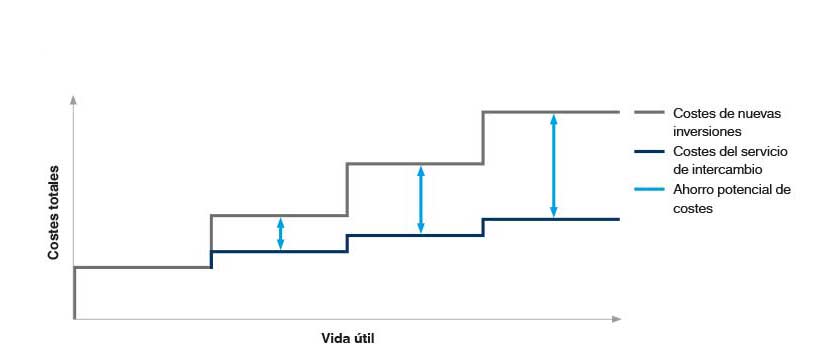Evolución típica de los costes de un sistema de sellos separadores con transmisores de proceso