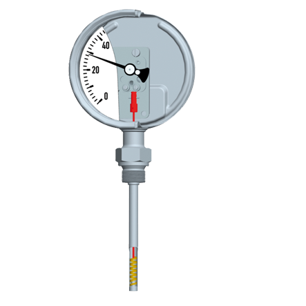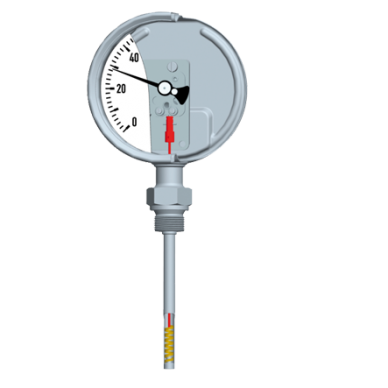 Si un extremo del sistema de banda bimetálica está sujetado en forma firme, el otro extremo hace girar el árbol portaíndice. Los rangos de visualización van de -70 °C a +600 °C con precisiones de clase 1 y 2 según EN 13190.