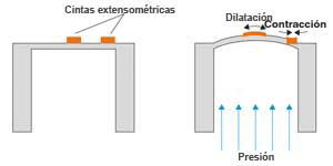 A menudo este cuerpo consiste en una membrana con una parte fina. El valor de la deformación en función de la presión se mide mediante una cinta extensométrica es decir conductores eléctricos metálicos tipo meandro. Habitualmente se encuentran cuatro cintas extensométricas en una membrana de las cuales unas están ubicadas en el área de dilatación, otras en el área del recalcado. La deformación de la membrana provoca la deformación de las cintas con el efecto de un aumento proporcional de la resistencia (dilatación) o de una reducción (recalcado). Para realizar una medición precisa se conecta las cintas a un puente Wheatstone.
