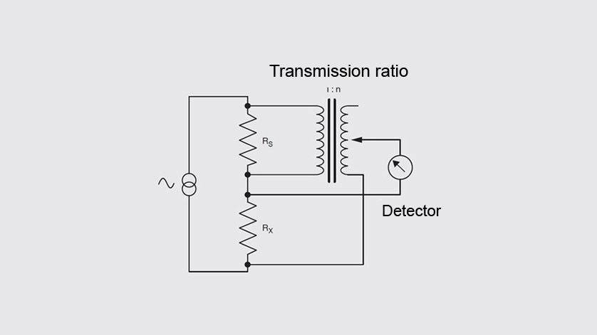 Le rapport des deux tensions et par conséquent des deux résistances, peut être mesuré de manière très précise avec un diviseur de tension inductif de haute précision, utilisé dans les ponts AC développés par ASL. Connaissant la composante Rs, Rt peut être déterminée à partir de n = Rt / Rs, où « n » est le ratio mesuré.