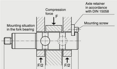 These specialized force transducers are mounted axially as well as against rotation. A microscopic gap (~1/5 of a millimeter) between the axle retainer and the slot enables free bending in the thrust bearing.